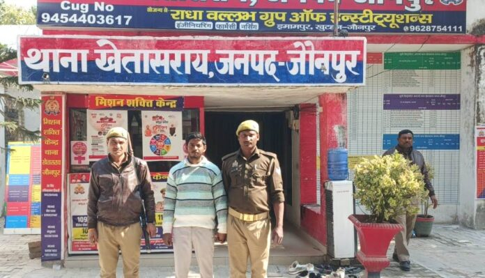 खेतासराय (जौनपुर) मारपीट करने वाले मनबढ़ किस्म के चार लोगों को पुलिस ने गिरफ्तार कर लिया और थाने लाकर विधिक कार्यवाई करते हुए चालान न्यायालय भेज दिया। पुलिस टीम ने शुक्रवार को थाना क्षेत्र के अब्बोपुर, सोधी एवं कलापुर गांवों से चार अभियुक्तों को हिरासत में लिया। थाना प्रभारी प्रदीप कुमार सिंह ने बताया कि अब्बोपुर क्षेत्र से मुकदमेबाजी को लेकर हेमन्त कुमार गुप्ता पुत्र अनिल कुमार गुप्ता निवासी बागभार कोहण्डा, थाना पवई, आजमगढ़ को गिरफ्तार किया गया। वही सोधी से मारपीट के मामले में रवि यादव पुत्र कमलेश यादव को गिरफ़्तार किया गया। इसके अतिरिक्त ग्राम कलापुर से नवनीत यादव उर्फ शिवपाल पुत्र धर्मराज एवं रोशन यादव पुत्र सुबेदार यादव, दोनों निवासीगण सफीपुर, थाना खेतासराय को शांति भंग की आशंका में गिरफ्तार किया गया।