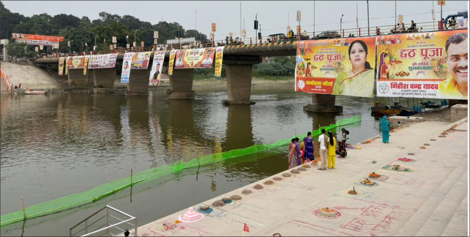 इसी तरह 28 अक्टूबर दिन मंगलवार की सुबह सूर्यादय के समय उपरोक्त दोनों पुल के बगल में स्थित विसर्जन घाट, भामा शाह घाट, गूलर घाट से अर्घ्य देकर 4 दिवसीय अनुष्ठान का समापन करने वाली व्रती महिलाओं को काफी दिक्कत होगी। बता दें कि इस समय भगवान भाष्कर के सूर्यास्त का समय लगभग 5.15 बजे से 5.30 बजे तक है। इसी तरह सूर्योदय का समय 6 बजे से 6.15 बजे तक अनुमानित किया जा रहा है लेकिन पुलों पर पटे होर्डिंग्स, बैनर आदि के चलते 36 घण्टे तक निराजल व्रत रहने वाली माताओं को आधे से पौने घण्टे तक और पानी में खड़ा होना पड़ेगा, क्योंकि जब तक वह सूर्यदेव को नहीं देखेंगी तब तक अर्घ्य नहीं देंगी। जब तक अर्घ्य नहीं देंगी, तब तक वह नदी से बाहर नहीं निकलेंगी। ऐसे में उनको काफी दिक्कतों का सामना करना पड़ेगा जिसकी ओर शासन एवं प्रशासन का ध्यान अवश्य जाना चाहिये।
