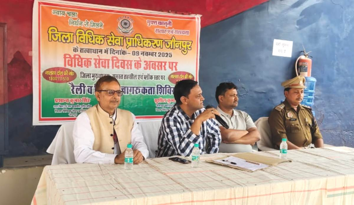 JAUNPUR NEWS जौनपुर : अपर जिला एवं सत्र न्यायाधीश तृतीय/सचिव, जिला विधिक सेवा प्राधिकरण प्रशांत कुमार सिंह ने अवगत कराया है कि उ०प्र० राज्य विधिक सेवा प्राधिकरण, लखनऊ के निर्देशानुसार एवं जनपद न्यायाधीश/अध्यक्ष जिला विधिक सेवा प्राधिकरण, जौनपुर सुशील कुमार शशि के निर्देशन व अपर जिला एवं सत्र न्यायाधीश तृतीय/सचिव, जिला विधिक सेवा प्राधिकरण, जौनपुर श्री प्रशांत कुमार सिंह की देख-रेख में ‘‘विधिक सेवा दिवस’’ के अवसर पर आज 09 नवम्बर को ‘‘जिला कारागार जौनपुर’’ में विधिक साक्षरता/जागरूकता शिविर का आयोजन कर विधिक सेवा दिवस को उत्सव के रूप में मनाया गया। सचिव द्वारा उपस्थित लोगों को विधिक सेवा दिवस के बारे में विस्तार पूर्वक जानकारी प्रदान करायी गयी और साथ ही राष्ट्रीय/राज्य विधिक सेवा प्राधिकरण की समस्त योजनाओं के बारे में बताया। कार्यक्रम का संचालन डा0 दिलीप कुमार सिंह, डिप्टी चीफ लीगल एड डिफेंस काउंसिल द्वारा लीगल एड डिफेंस काउंसिल द्वारा प्राप्त निःशुल्क विधिक सहायता के बारे में बताया।