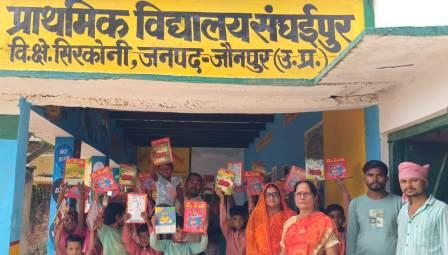 जफराबाद: छेत्र के संघईपुर प्राथमिक विद्यालय में पढ़ाई कर रहे गरीब एवं निराश्रित बच्चों को समाजसेवी द्वारा मंगलवार को नि:शुल्क पाठ्य सामग्री वितरित की गई जिसमे कापी , पेंसिल, पेन, इरेजर, स्केच, आदि प्रमुख थे। समाजसेवी दिनेश चौहान ने बताया कि हम आने यथाशक्ति से गरीब एवं निराश्रित परिवारों हेतु कार्य कर रहे है, इसी कड़ी में हमारी टीम द्वारा प्रत्येक ग्राम सभा के कुछ सरकारी स्कूलों को चिन्हित किया गया है जहां पहुंचकर हम उन बच्चों को पाठ्य सामग्री नि:शुल्क उपलब्ध करा रहे हैं। समाजसेवी दिनेश चौहान ने बताया कि हमारा उद्देश्य गरीब, जरूरतमंद, निराश्रित, शोषित, वंचित व्यक्तियों एवं उनके परिवारों तक राहत सामग्री पहुंचाना है।